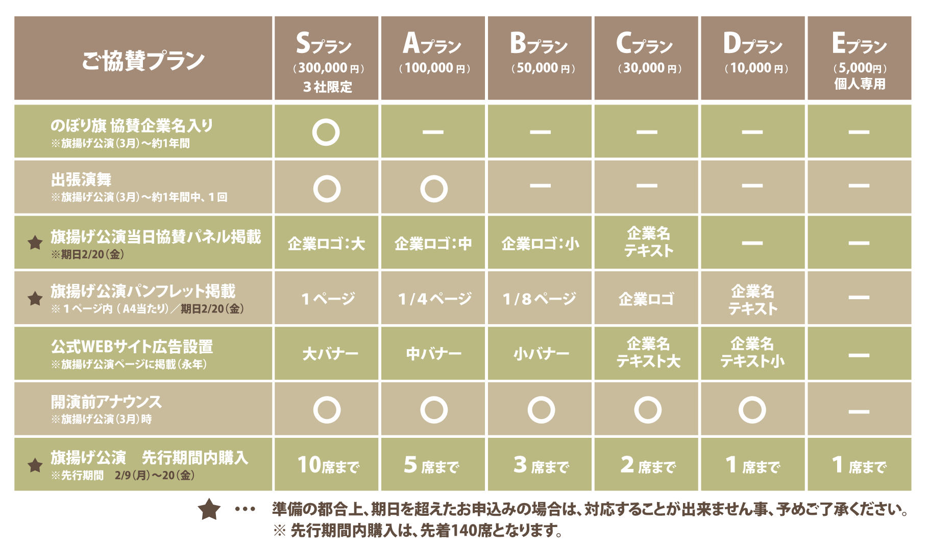 旗揚げ公演を象徴する特別協賛プランです。