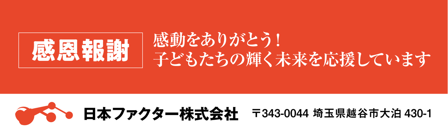今井裕子様 カラオケダイニングまリん様 麻白膿良様 有限会社小林不動産様 有限会社アンサンブルアスク様 神社でままマルシェ実行委員会様 キャンプナノ越谷キャンプ場様 有限会社日真堂様 株式会社浜野保険事務所様 五十嵐康則様 加藤俊輔税理士事務所様 株式会社エフ広芸様 有限会社若松様 親子カフェKotona様 MFP建築構造様 有限会社サンアイ様 ペイフォワード株式会社様 ZELE-PARIS様 埼葛法律事務所様 有限会社平総合開発様 サラダ館東越谷店様 小美玉琉球部様 株式会社ビジョンワーク様 STUDIO MOVE様 立澤貴明総合事務所様 株式会社ぴース様 株式会社すてっぷ・ばい・すてっぷ様 瀧川喜之様 鬼武蔵公演実行委員会様 中村将義様 株式会社タコプラグループHD様 有限会社栗原木工所様 青山鋼業株式会社様 SAITAMA HEARTS.EXE様 ぽんて鍼灸整骨院様 ぽんてアロマサロン様 株式会社エスケーハウジング様 株式会社大新様 株式会社エムエスピー様 豊田剛史様 株式会社オークマ様 株式会社エフエムこしがや様 親彩有志ー同様 株式会社ReaL様 丁野朗様 株式会社桃太郎海苔様 有限会社エイムスポーツクラブ様 一般社団法人自己承認力コンサルタント協会様 DRESSERS様 協和興運株式会社様 フタバペイント株式会社様 親鷲有志ー同様 有限会社サトー建エ様 小林真理子様 BETAbet合同会社様 桝田電工株式会社様 本成寺様 レイクアンドビース株式会社様 株式会社トハン様 株式会社カーズシンエイ様 有限会社神代エ務店様 有限会社前野鉄工所様 大袋の接骨院様 小林巧税理士事務所様 小林史典様 ほのか応援団真央&たかぴー&まリ様 フェニックスクラブ様 Marvellous様